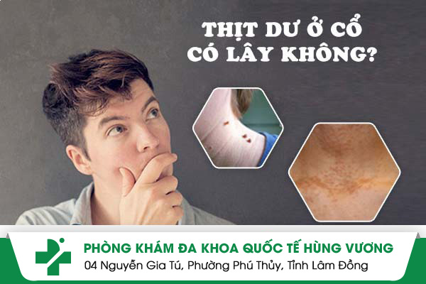Theo các chuyên gia liễu Phòng Khám Da Liễu Hùng Vương, mụn thịt dư ở cổ không có khả năng lây. Tuy nhiên, theo như phân tích ở trên có thể thấy, các nốt mụn này nó có khả năng di truyền từ thế hệ này sang thế hệ sau. Điều này có nghĩa, trong gia đình (ông bà, cha mẹ) có người mắc loại mụn này thì khả năng cao khi sinh con cũng có thể di truyền.