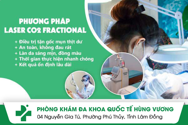 Hiện nay, Phòng Khám Da Liễu Hùng Vương đã áp dụng trị mụn thịt ở cổ bằng nhiều phương pháp như: đốt mụn bằng tia laser, nitơ hay laser. Nổi bật nhất là phương pháp Laser CO2 Fractional được các chuyên gia khuyên dùng, không gây đau, không để lại sẹo.