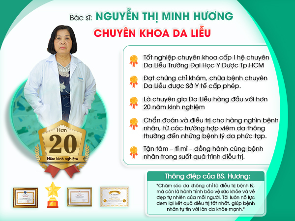 Toàn bộ bác sĩ đều từng công tác tại các bệnh viện lớn như Da Liễu TP.HCM, Đại học Y Dược… giàu kinh nghiệm – chẩn đoán chính xác – điều trị hiệu quả.