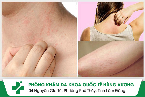 Ngứa có ban đỏ, nốt đỏ, nổi mảng, khô da bong tróc vảy hoặc ngứa nhưng không nổi gì.